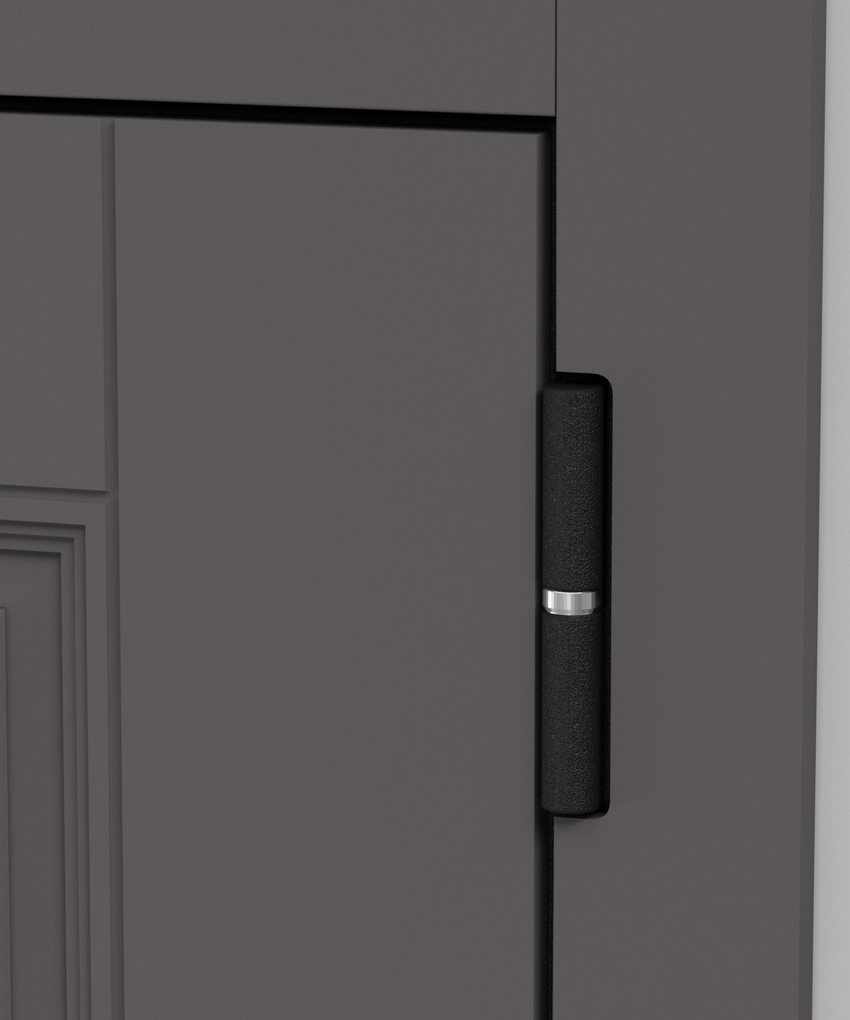 • Внешняя отделка: фактурный мдф в оттенке Грей нубук — элегантное решение для входной зоны.